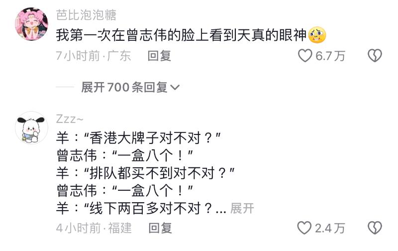 而曾志偉在直播間的反應,也直接爆了熱搜,因為他全程就是重複「一盒八粒」,而且對於小楊哥介紹香港美誠是當地非常知名的大牌子時,全程露出困惑的表情,但並沒有出言糾正!