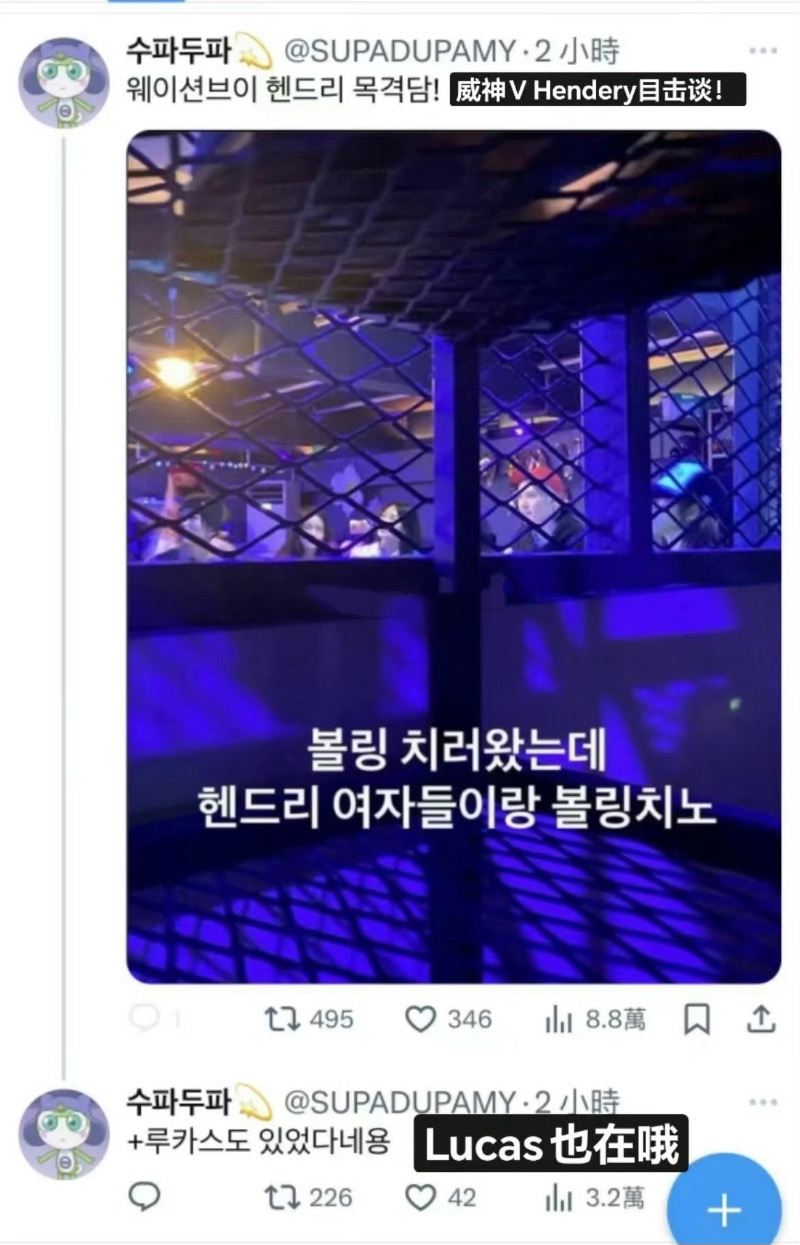 另外,保齡球場偶遇照中,清楚可見背景有WayV的氣球,可見不是私人活動👇