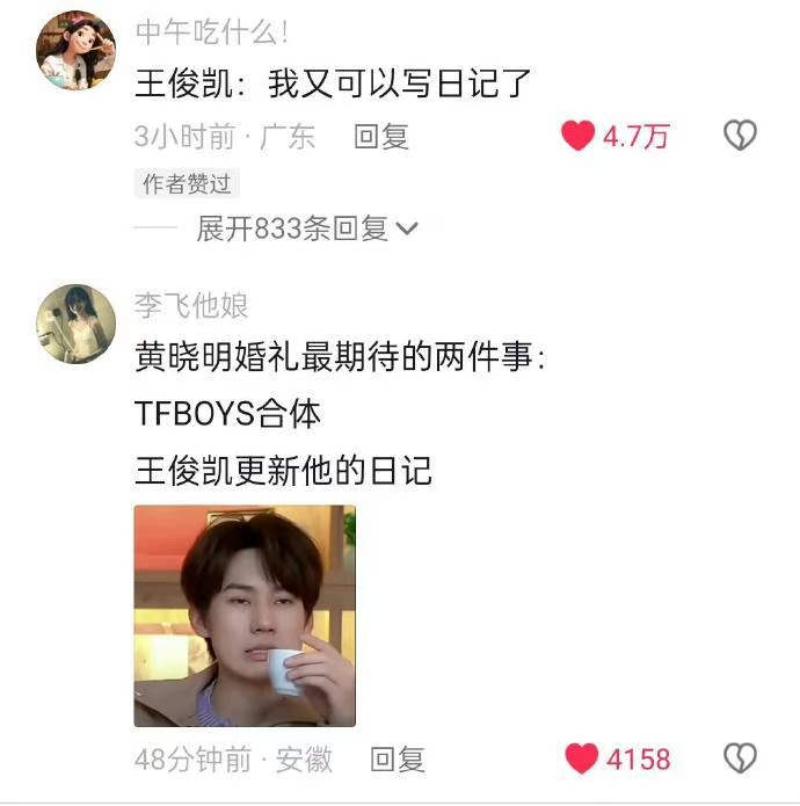 所以,在黃曉明官宣之後,不少網友都在線cue王俊凱,是否還會來另一篇小作文👇