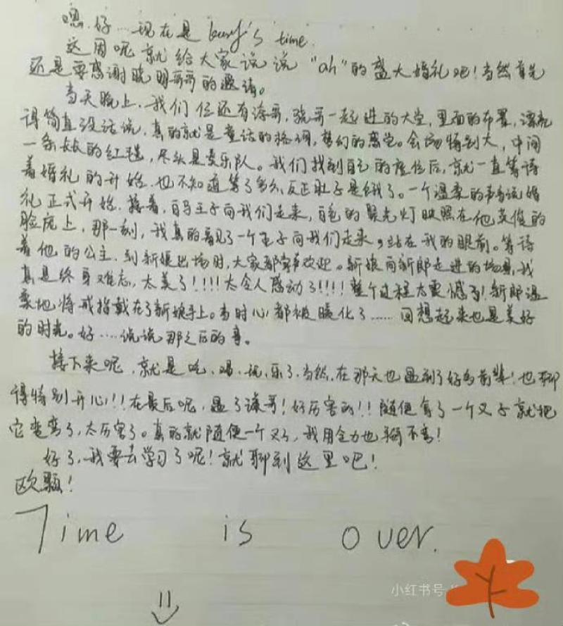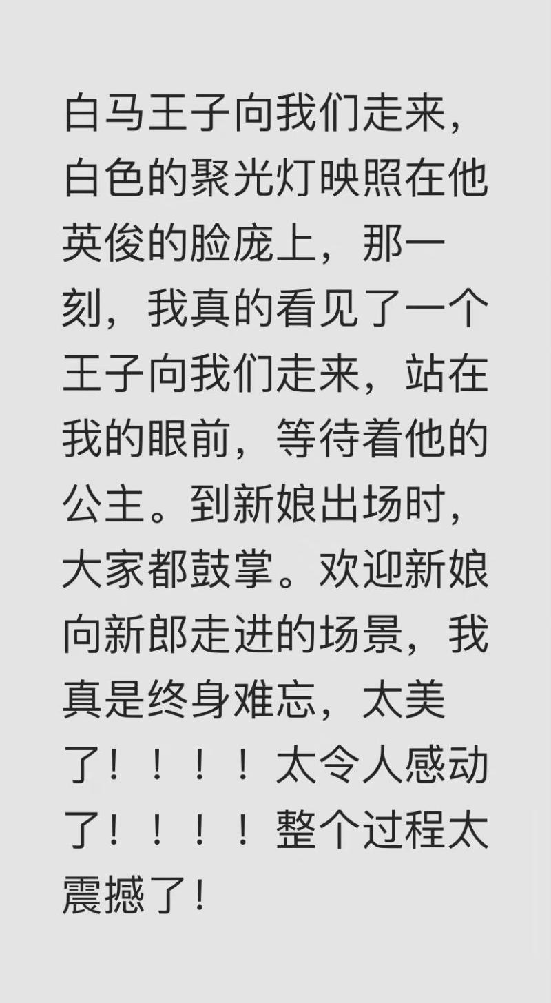 甚至還真情實感的寫了篇“觀禮”小作文,也就是當初寫給粉絲的周記!裡面不但誇兩人的婚禮就像童話的格調,還提到由于邀請的賓客衆多,自己在座位上都等餓了,儀式才正式開始。