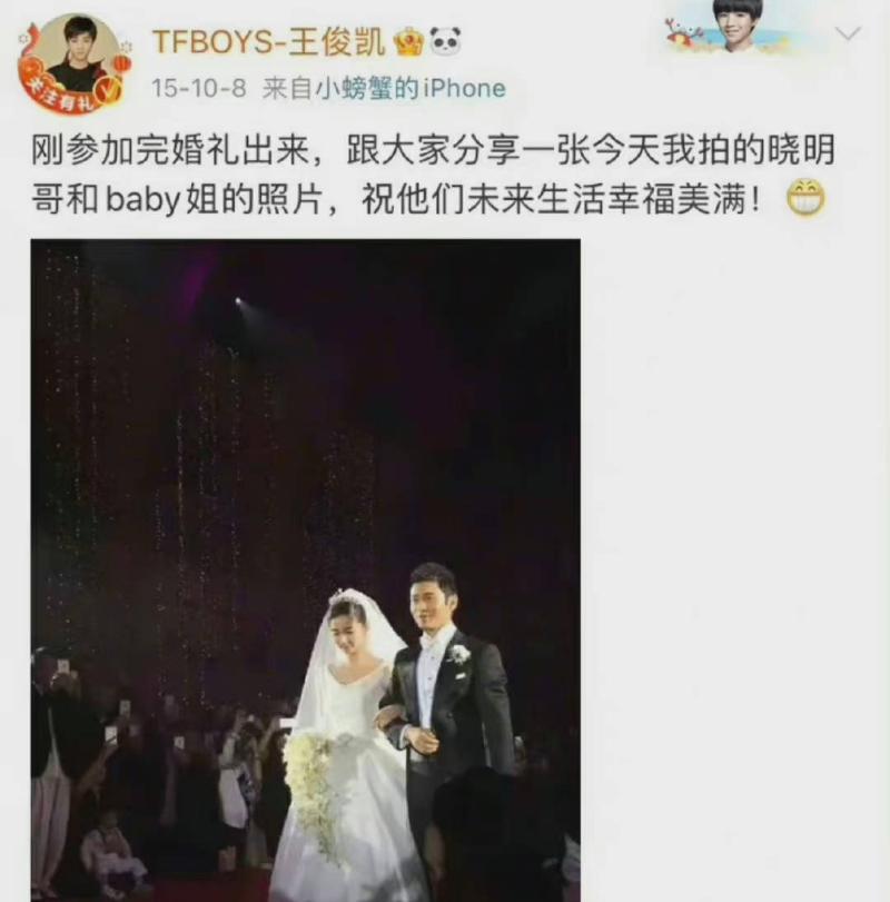 為什麼會特別cue他呢?這是因為當初TFBOYS不但合體出席了婚禮👇