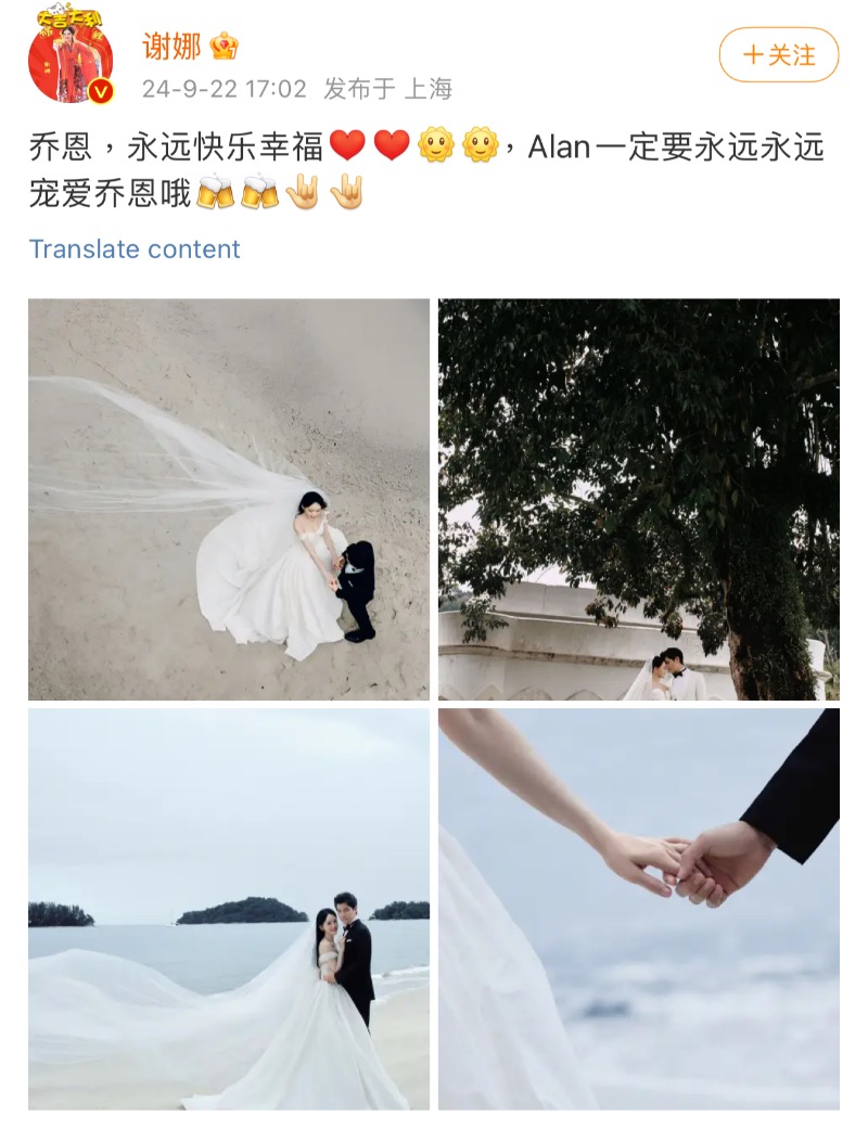 雖然但是,謝娜最終沒有出席婚禮,不過特別發文祝福好友!