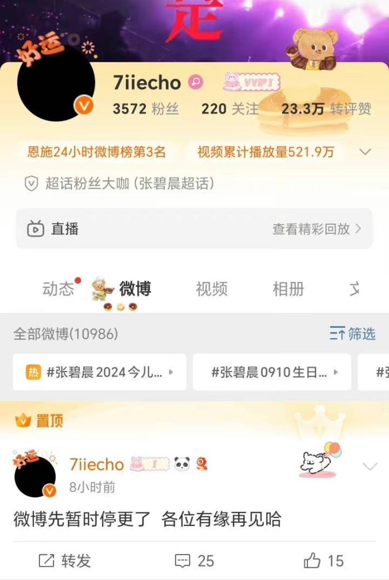 姐姐真的有話直說,完全沒有在掩飾或置之不理!對於粉絲引爭議的地方就教育,真的是棒棒噠~不過在張碧晨發文之後,有不少粉絲表示不滿,認為被罵難道不可以反擊?其中一名大粉直接發文,表示…暫更!