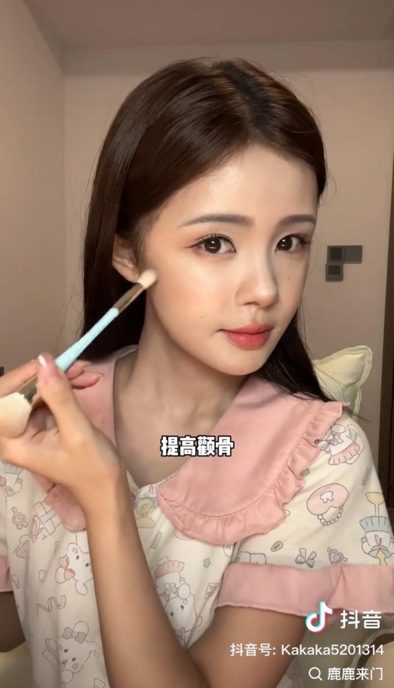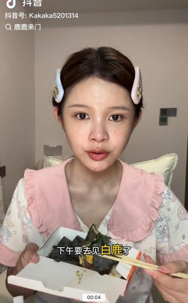 事實上,這位賬號「鹿鹿來門」的美妝博主,仿妝是出了名的,她化妝前原生臉長這樣👇