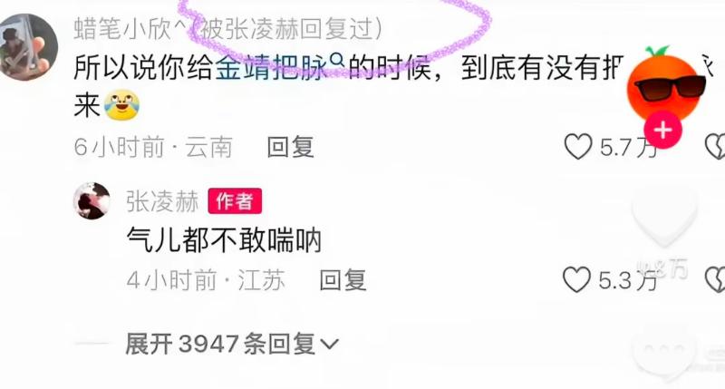 事實上,張凌赫自己也曾回應網友,表示當時幫金靖把脈時的第一感覺,就是:「氣兒都不敢喘吶!」看得出我們張醫師也十分震驚吧!
