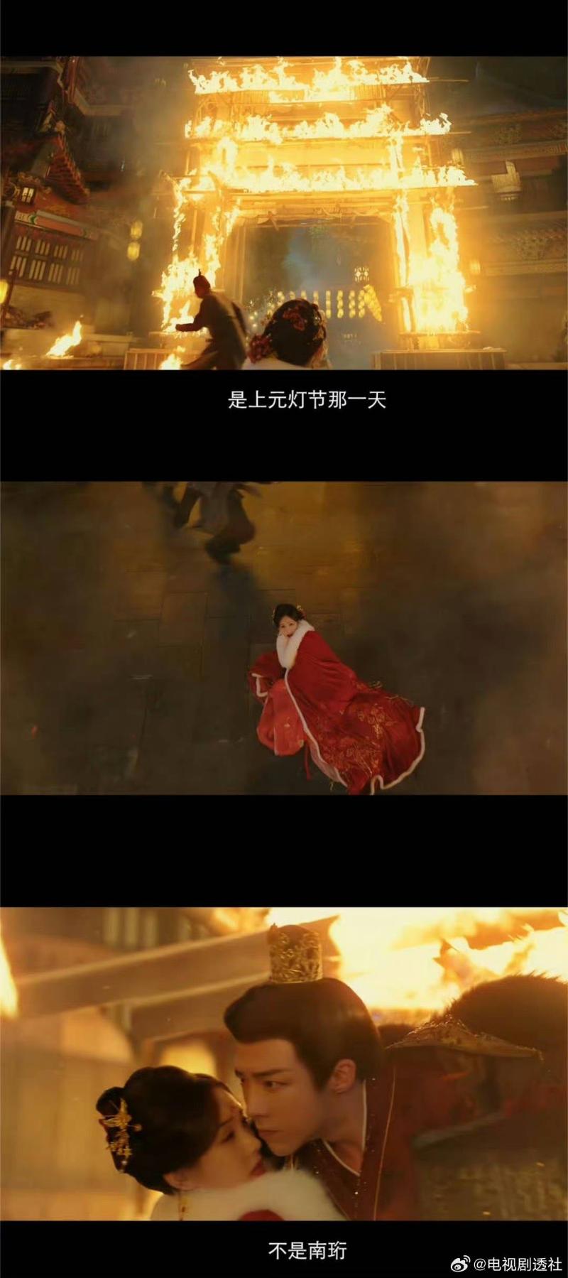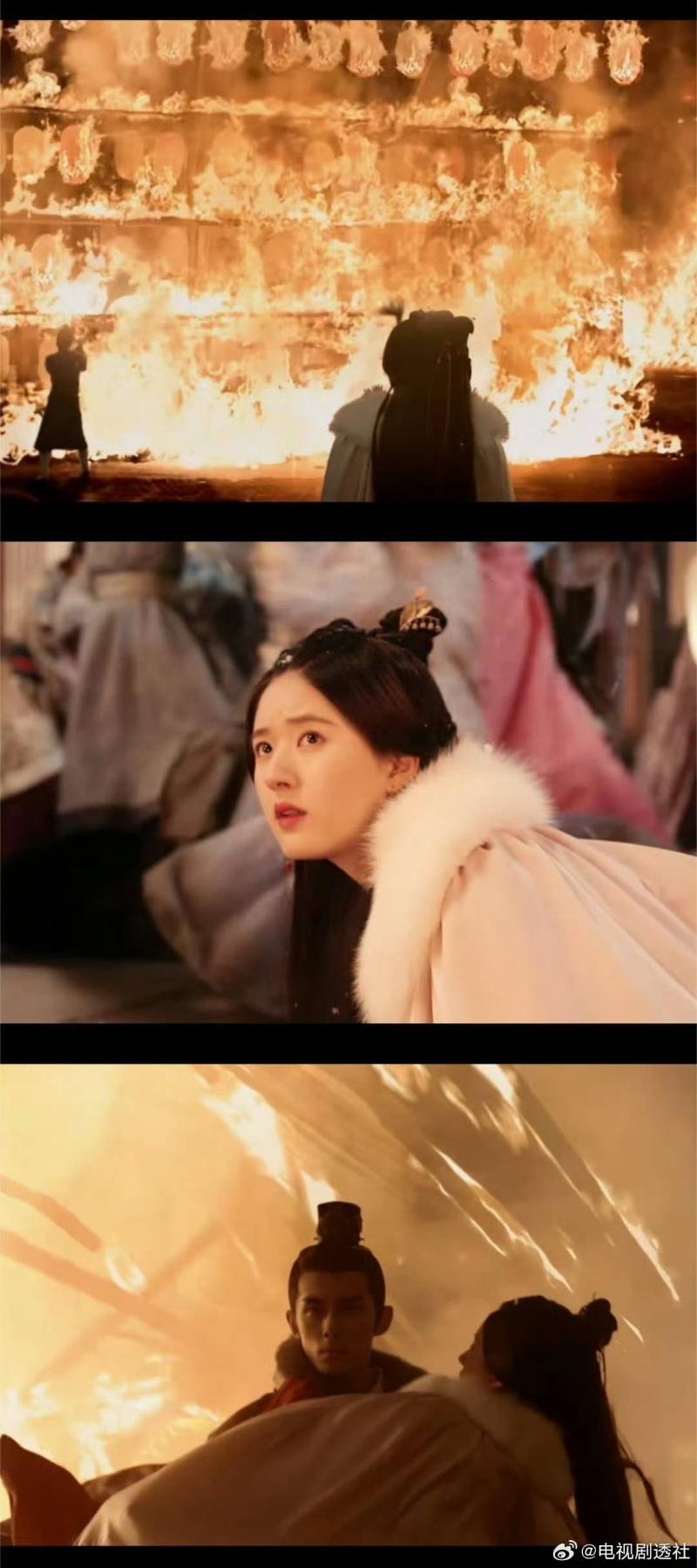 兩部劇為什麼會被扯在一起呢?原來是因為預告中出現了一段城樓失火、女主跌倒在地,男主英雄救美的鏡頭👇