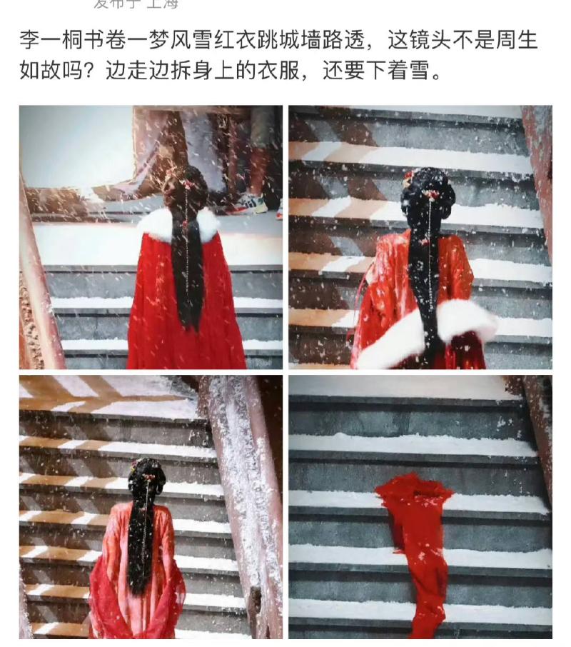 事實上,除了《星漢燦爛》,《書卷一夢》中的這個鏡頭,也被指和白鹿、任嘉倫主演的《周生如故》中,白鹿跳城樓的部分類似👇