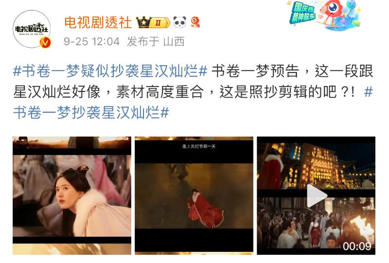這樣的鏡頭立刻引起了《星漢燦爛》劇迷不滿,認為《書卷一夢》就是在抄襲,兩方劇迷吵得不亦樂乎!