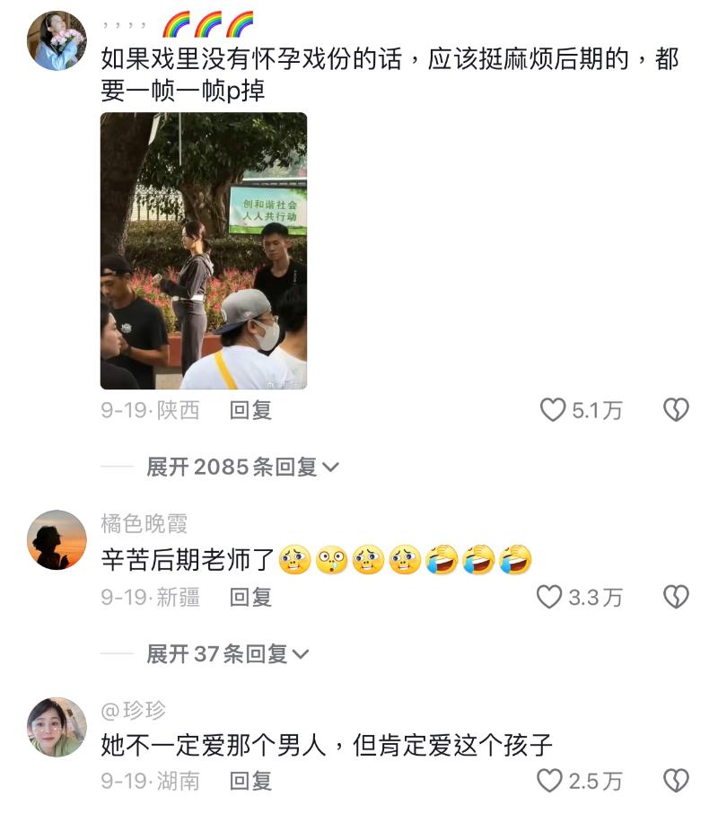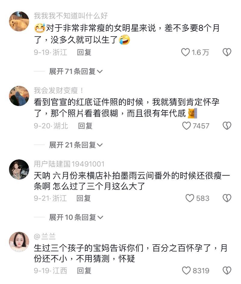 而之後在劇組忙著拍攝的吳謹言,不少路透都看得出…孕肚很明顯👇
