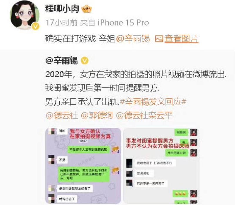 辛雨錫和劈腿對象喊話,讓秦霄賢道歉👇