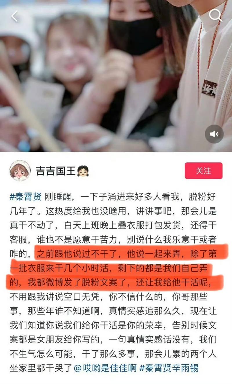 再對比之前另一個脫粉大粉指控的,秦霄賢把她們當免費勞工,秦霄賢究竟把粉絲當什麼來了呢👇