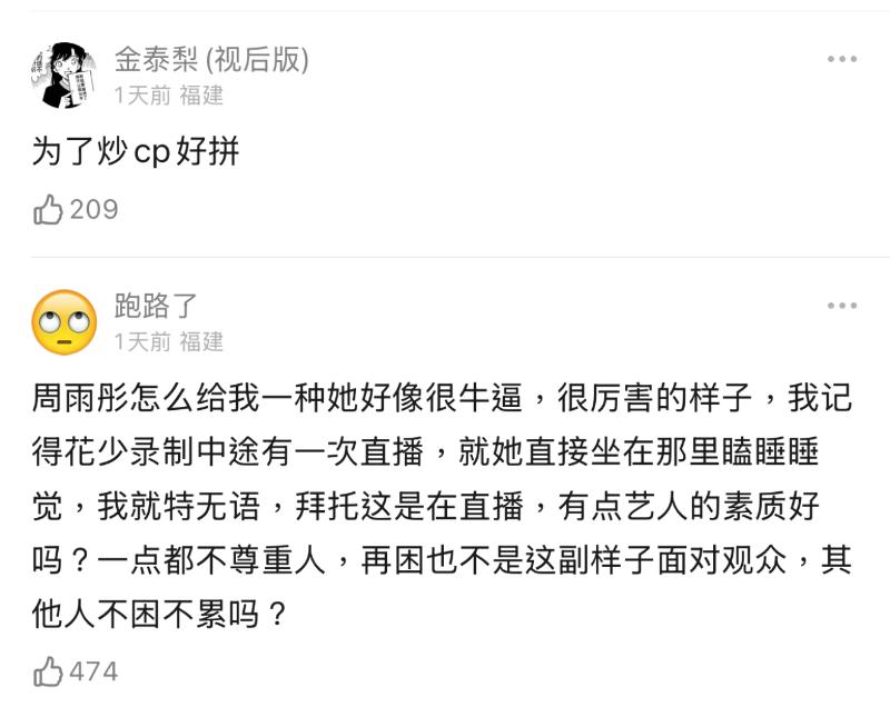 就是說,這是花少的傳統抓馬爭議嗎?是噠,都知道除了第五季的《花兒與少年》,每一季的花少都堪比大型抓馬現場,而很明顯這次最出圈的,就是周雨彤!
