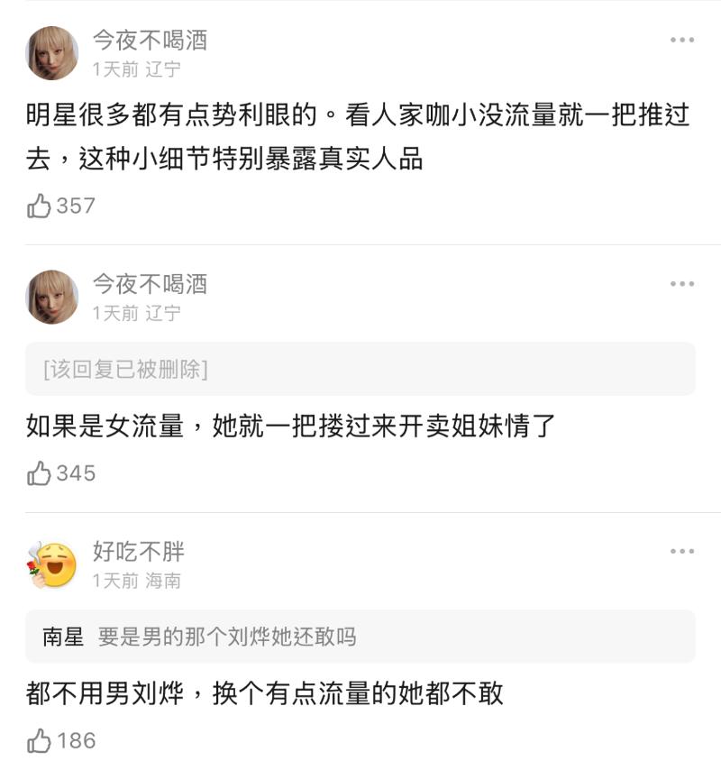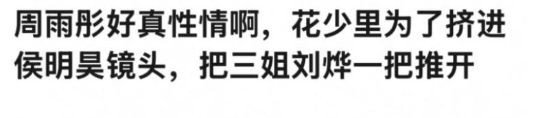 沒想到這又來第三次,這次是因為在合照的時候,周雨彤被指直接推開劉烨,被吐槽了👇