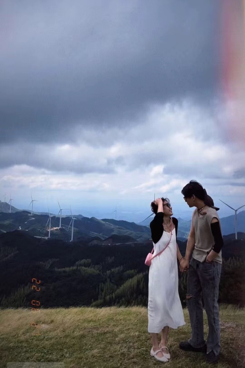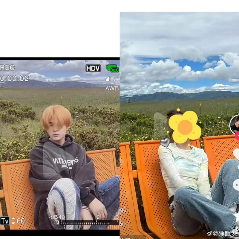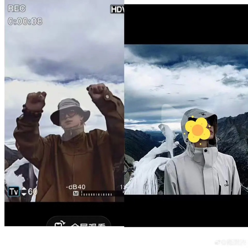 兩人社交平台出現同款拍照背景,地點拍攝角度高度重合,連天上的雲都一模一樣! !