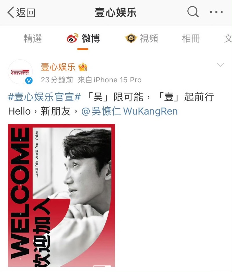 這裡先科普一下,一向無經紀公司的吳慷仁,在9月最後一天發長文,官宣加入了中國經紀公司👇