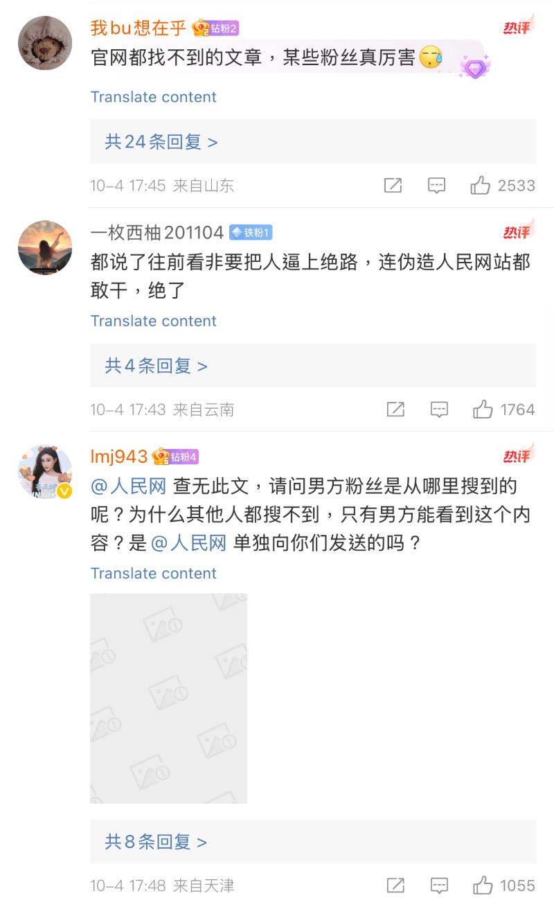 辛雨錫曬出證據,在人民網專欄找不到相關文章,粉絲也拿不出從官網進入文章的錄影畫面,但卻大規模傳播這篇假文章,企圖製造官媒力挺秦霄賢的錯誤引導!