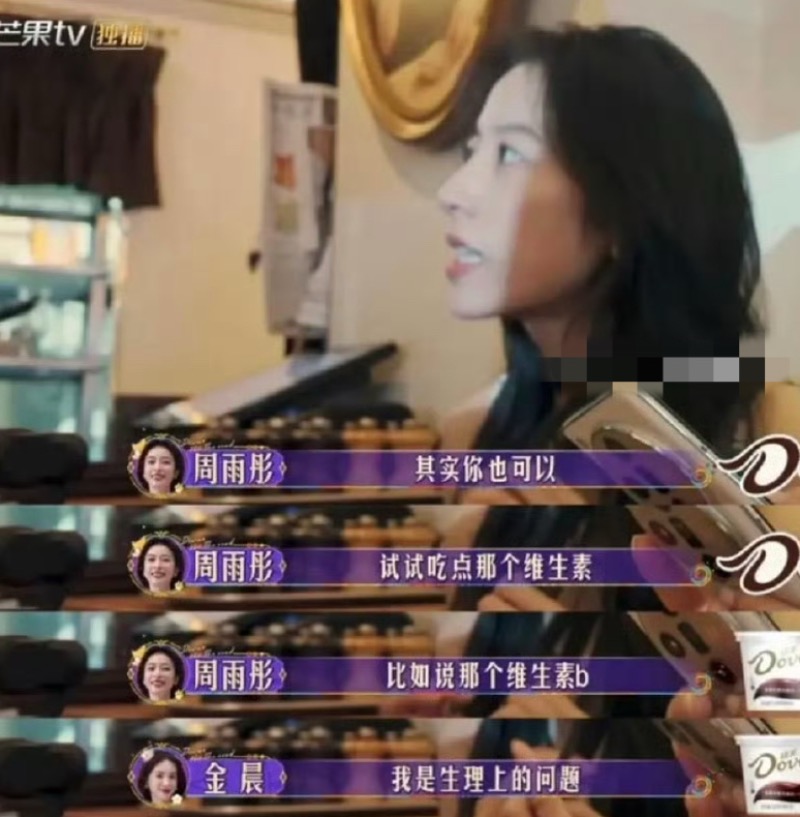 周雨彤直接在鏡頭下問為什麼要吃藥,金晨估計是顧及個人隱私,因此先是用手指向心,後來應該在思考怎麼組織語言,所以說話有點卡頓👇