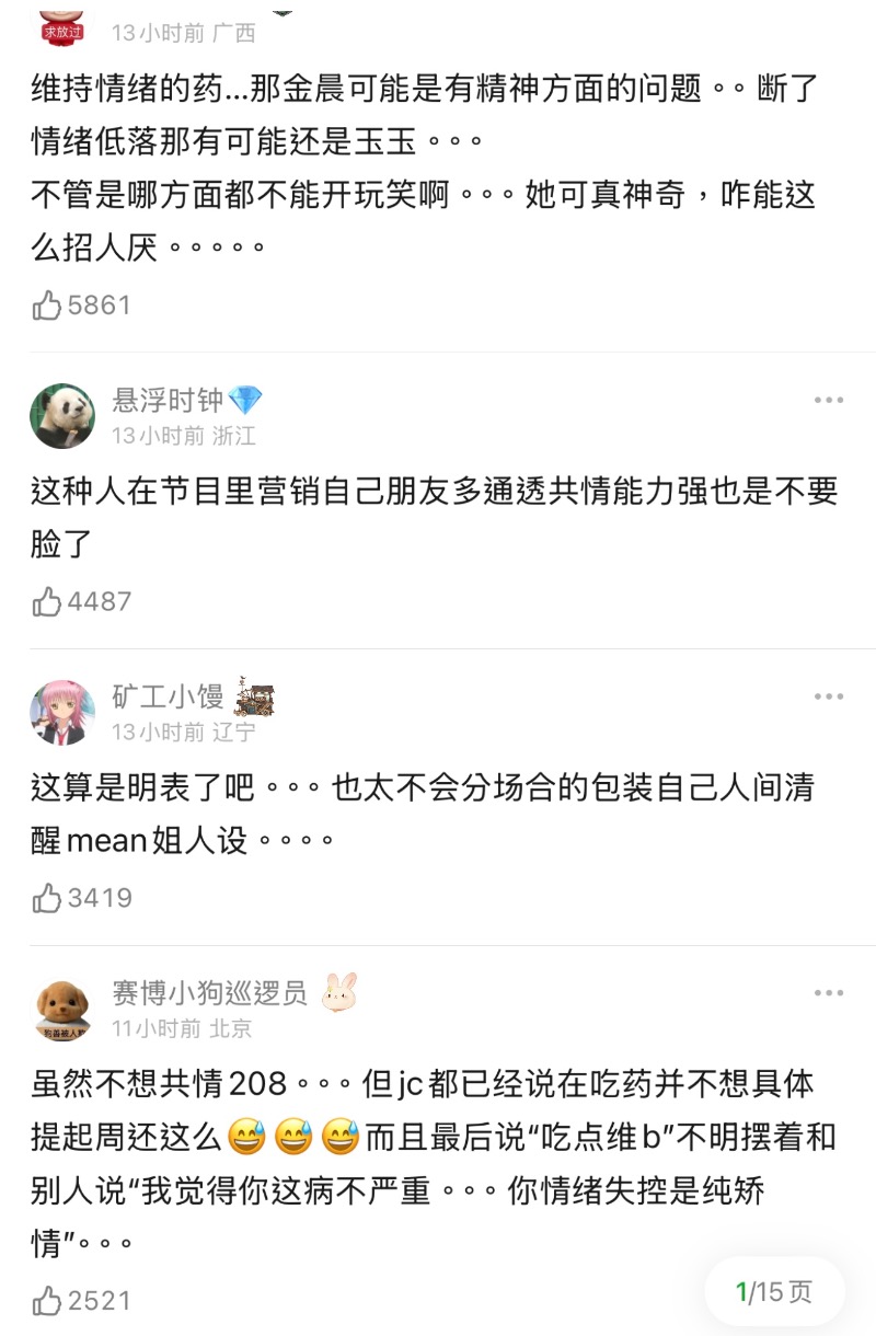 沒想到在最新的花少中,周雨彤又又又被炮轟了!起因是金晨說自己有一種疾病,需要每天吃藥,但現在已經幾天沒吃了,斷了就會引起情緒低落等👇