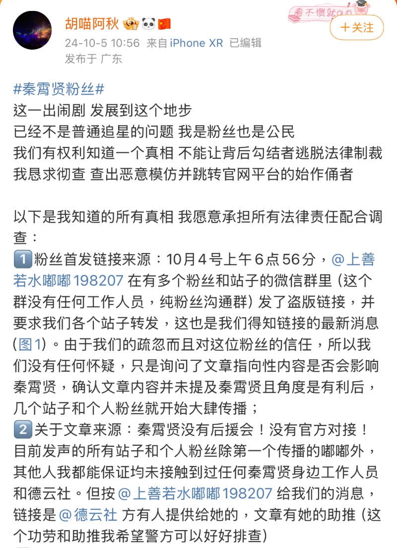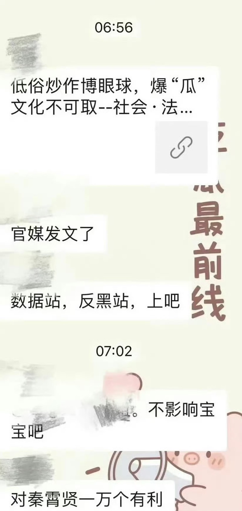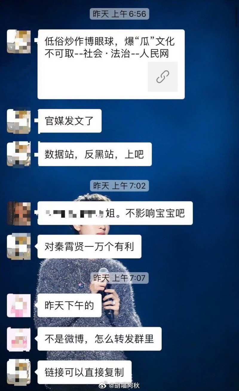 秦霄賢超話大粉說「我們只負責傳達」,還說“嚴懲始作俑者”並換黑頭像。