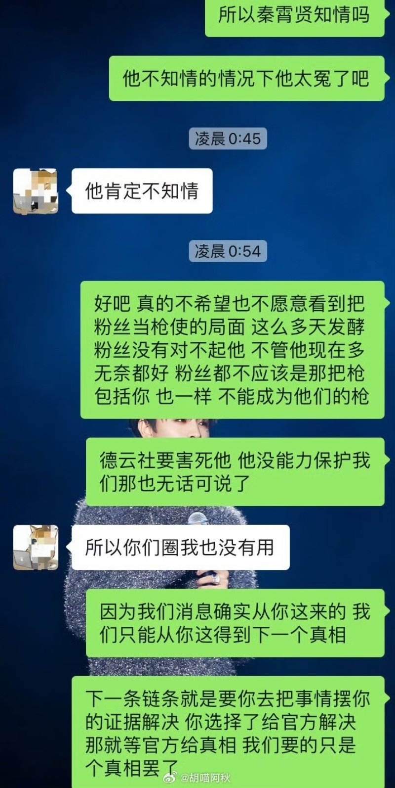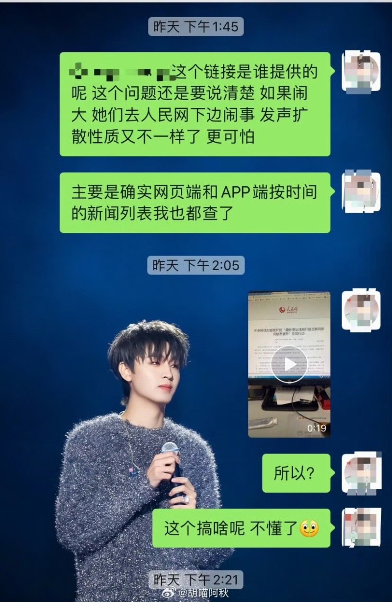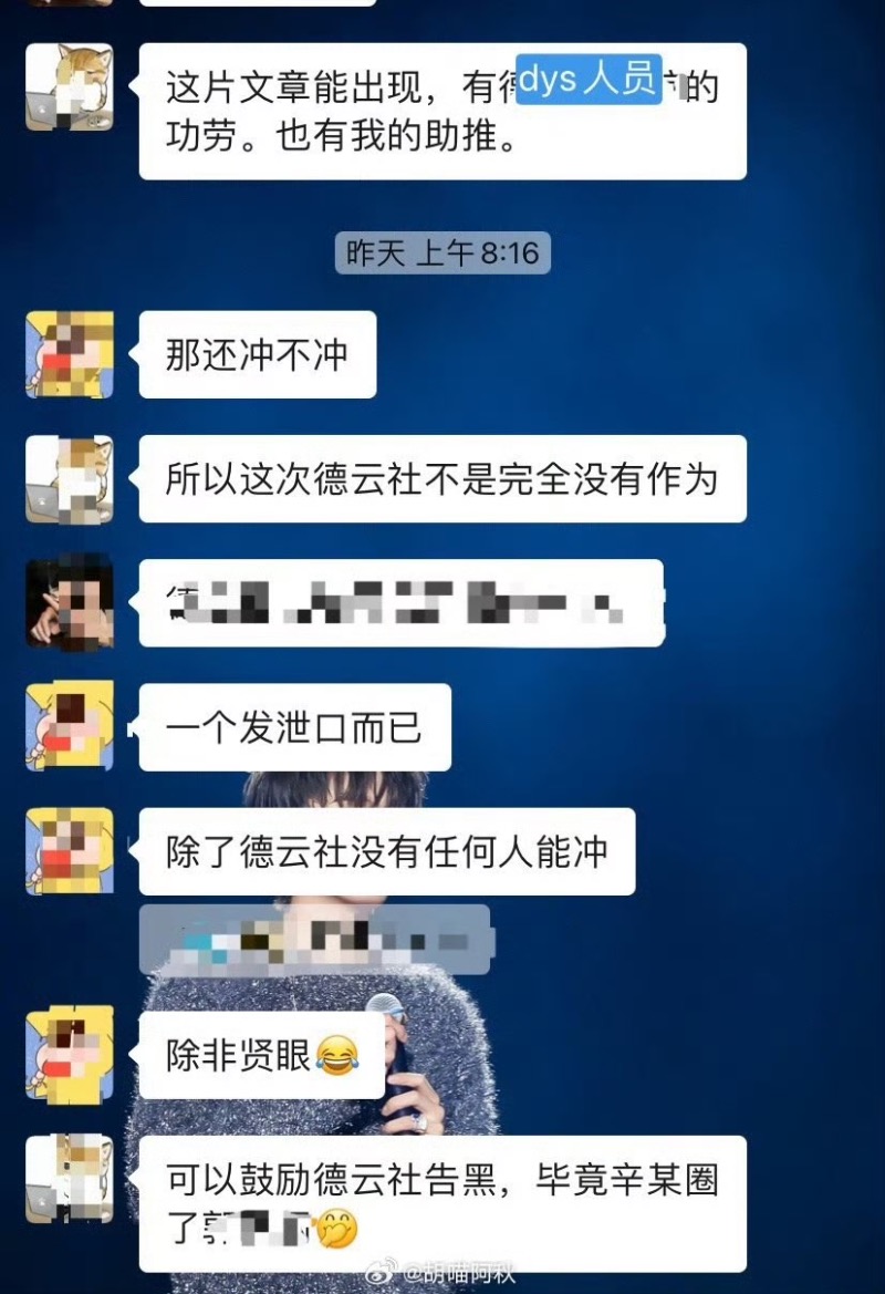網站被質疑造假後去詢問大粉,但大粉表示是xxx提供(名字被馬賽克,但另一個爆料截圖顯示是秦霄賢經紀人)粉絲開始質疑是德雲社設下的圈套👇