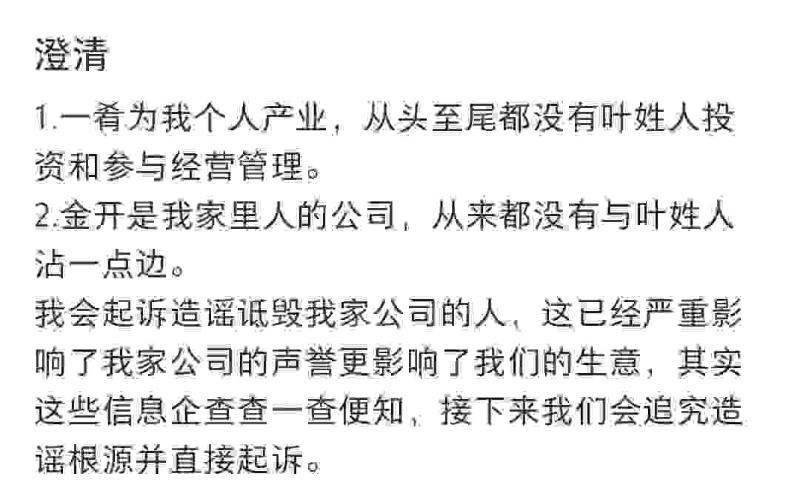 而這次發文,則是澄清出現在葉珂簡介下的兩家公司與“葉姓人”無關,字裏行間透露出不想再與前妻有任何糾纏,分開了就各自安好吧,別再來“沾邊”了。