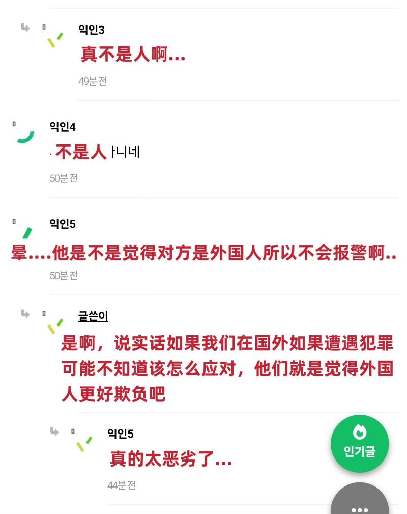 韓網對於受害者居然是外國人感到衝擊,不少網友認為,或許犯罪者認為外國人將會保持沉默,才會做出這麼「不是人」的舉動👇