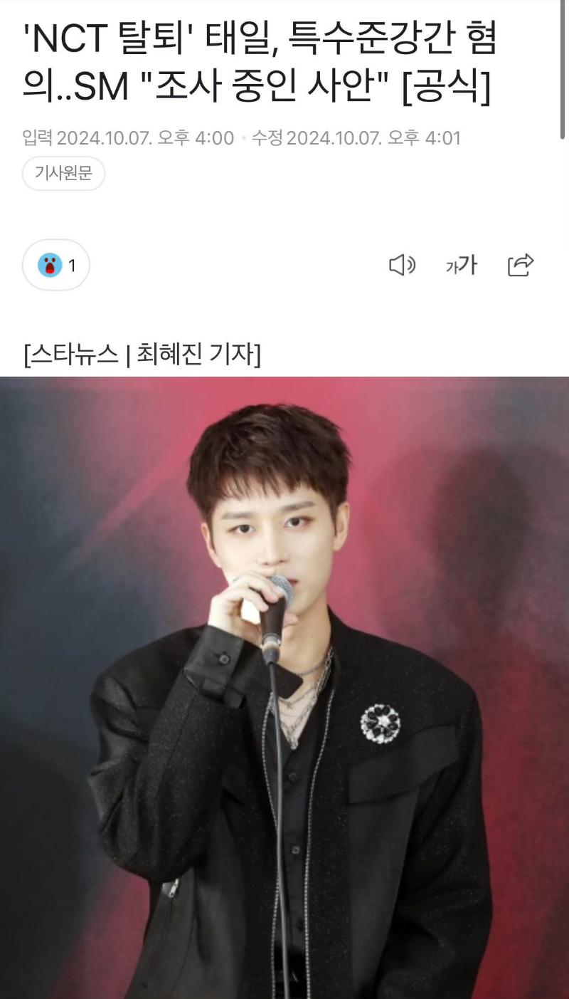 是噠,前NCT成員文泰一在8月底被爆出涉及性犯罪,相關細節一直到7號才有了後續進展,韓媒報導表示文泰一因涉嫌與兩名熟人一起對醉酒女性實施性暴力,于今年6月被起訴。