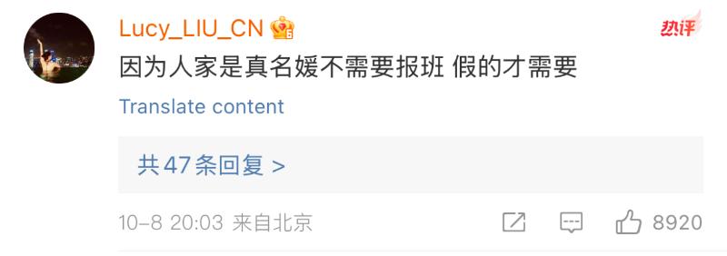 隨後還八卦的反問網友:「你們都在沖浪哦?最近我也在沖,名媛班應該是北京,但是我不知道~」