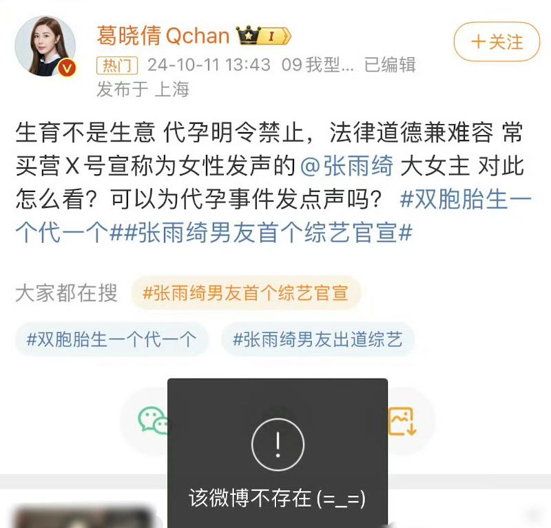 但隨著熱議,葛曉倩又再次發文,直接艾特了張雨绮出來交代有關代孕一事。