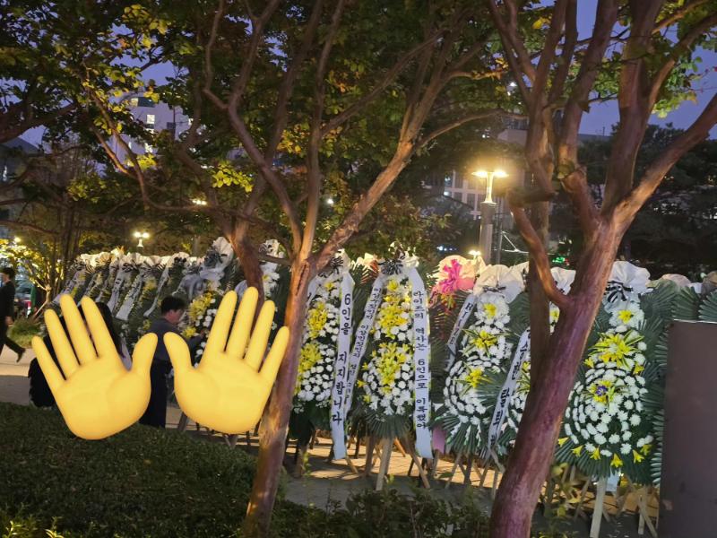 隨後,SM公司樓下開始出現抗議粉絲送來的吊唁花圈👇