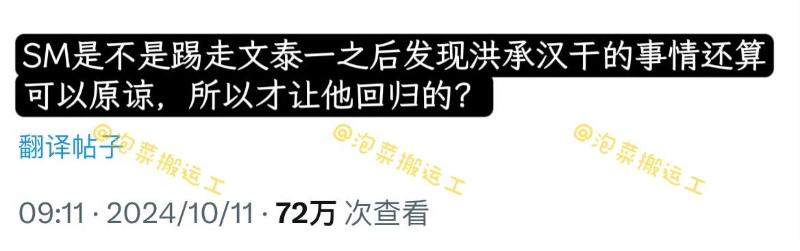 就是說,這樣的局面…SM會怎麼應對呢?最後,有網友調侃表示,SM之所以讓洪承漢回歸的原因,是因為這個👇