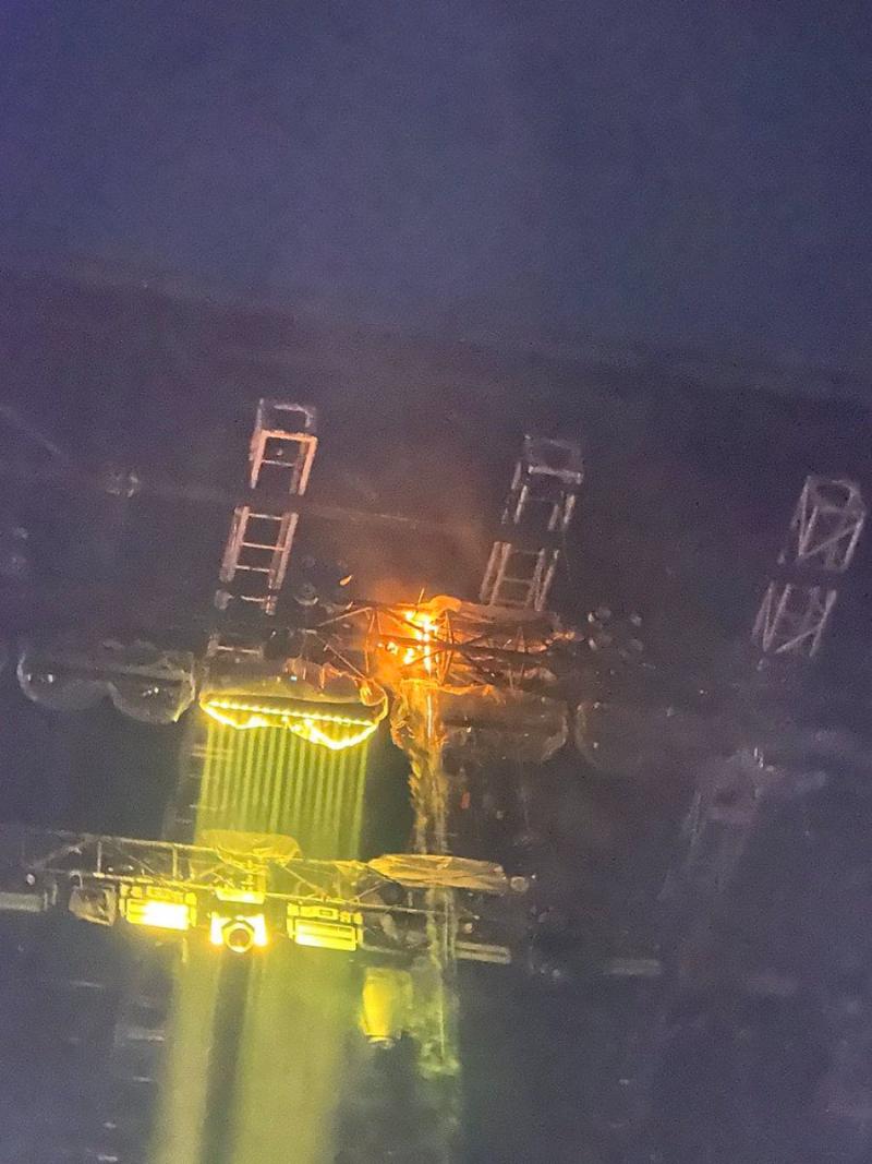 沒錯,先來看看,在舞台上方居然著火了,據悉是煙火效果導致而成!