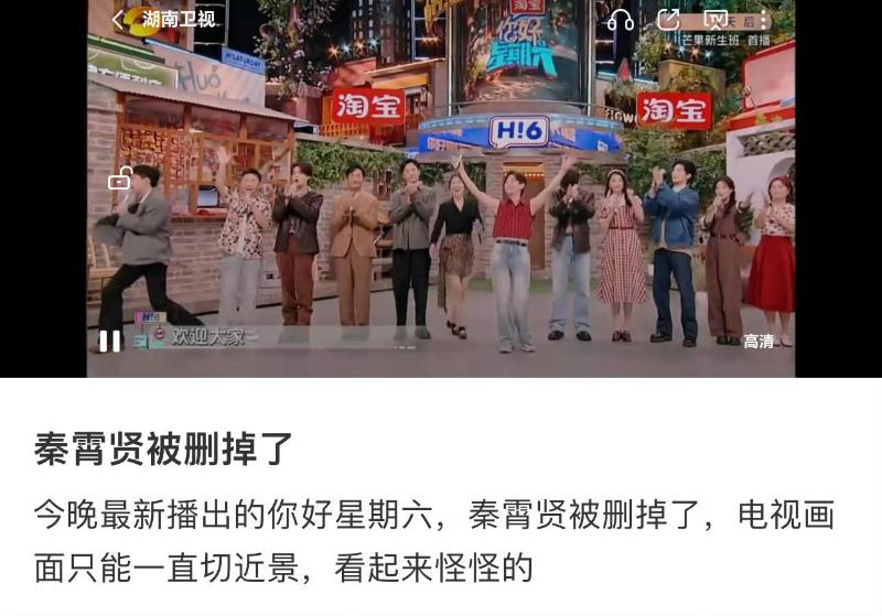 沒想到星期六晚上最新的《你好!星期六》播出後,網友發現秦霄賢…被消失了!沒錯,先來看看,官博的貼文已經沒帶秦霄賢👇