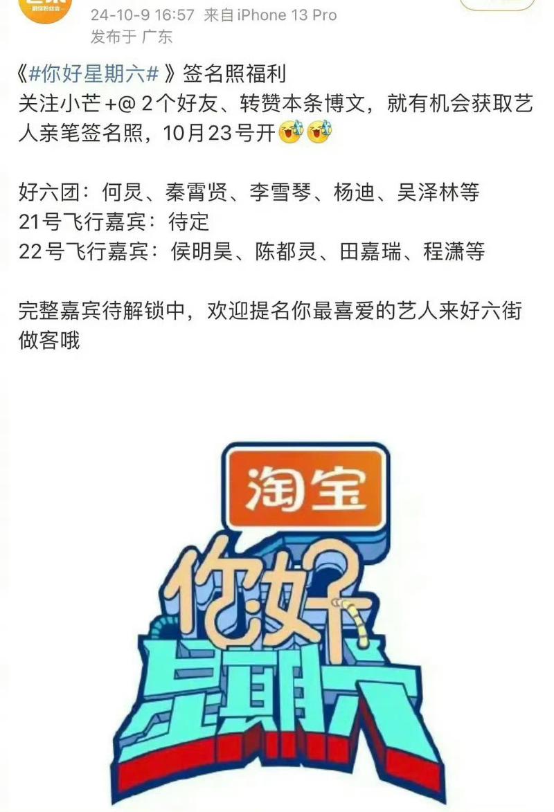 甚至傳出秦霄賢將繼續參與《你好星期六》的錄製👇