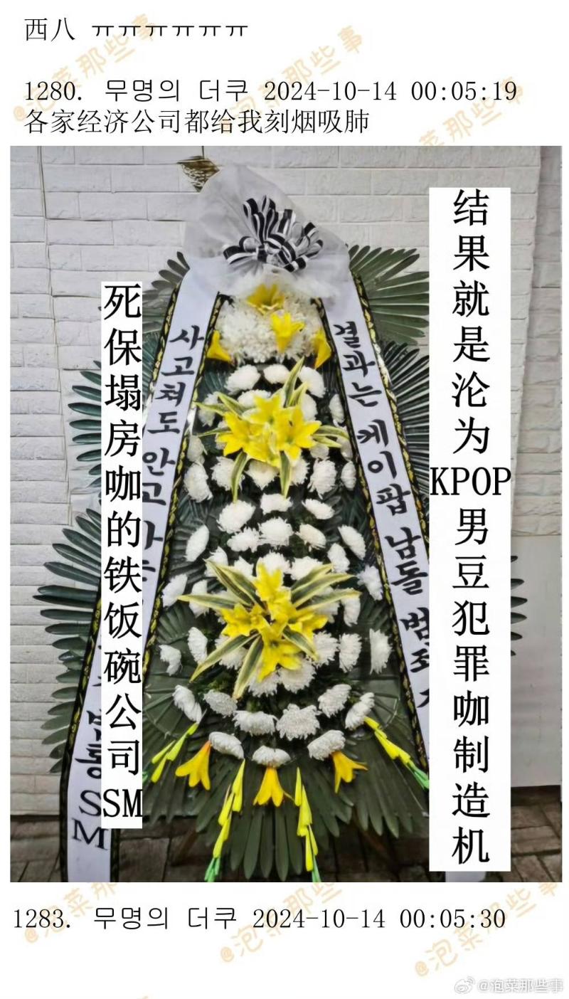 嗚哇~這真的是有效示威啊!是噠,都知道SM官宣因私生活爭議暫停活動的RIIZE成員洪承漢,將正式回歸活動,引發粉絲大規模抗議,吊唁花圈淹沒了SM大樓下的公園👇