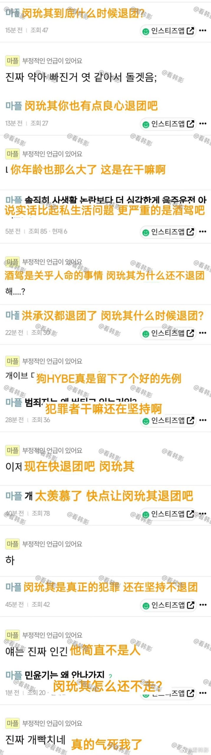 不過與此同時,隨著RIIZE粉絲抗議成功,韓網將炮火轉移到了防彈少年團成員閔玧其身上!之前閔玧其涉嫌酒駕,也引發了退團抗議👇