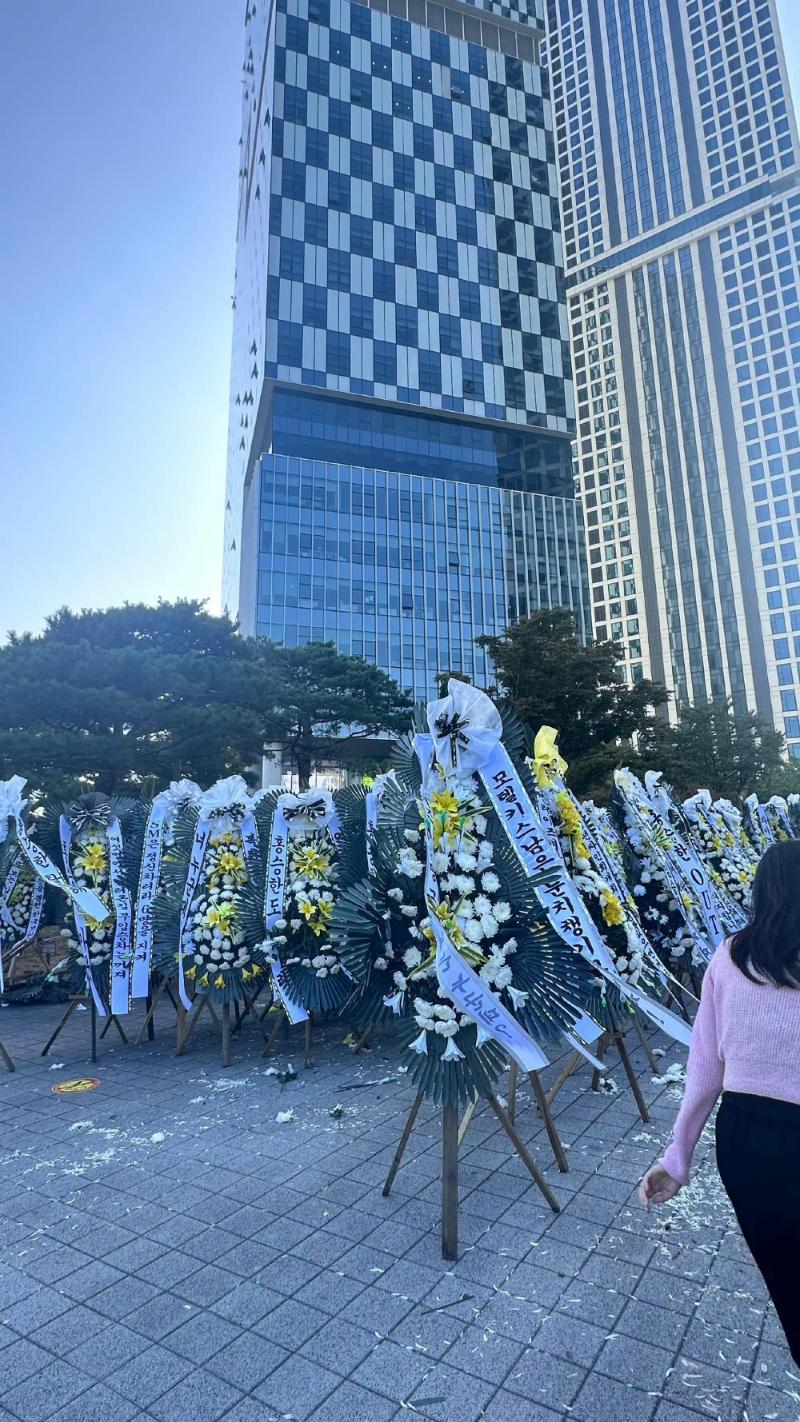 嗚哇~這真的是有效示威啊!是噠,都知道SM官宣因私生活爭議暫停活動的RIIZE成員洪承漢,將正式回歸活動,引發粉絲大規模抗議,吊唁花圈淹沒了SM大樓下的公園👇