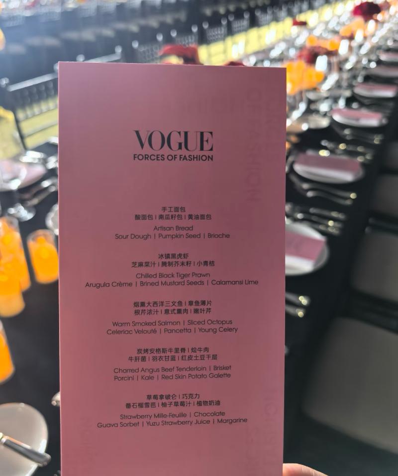 另外,當晚的菜品也被曝光!相比其他的晚宴,VOGUE今年真的有好好在準備,菜品包括了👇