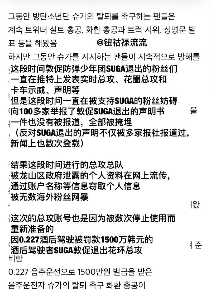 – 酒駕前科者SUGA OUT,SUGA呀 不是說讓粉絲們堂堂正正地擡起頭來嗎 呵
