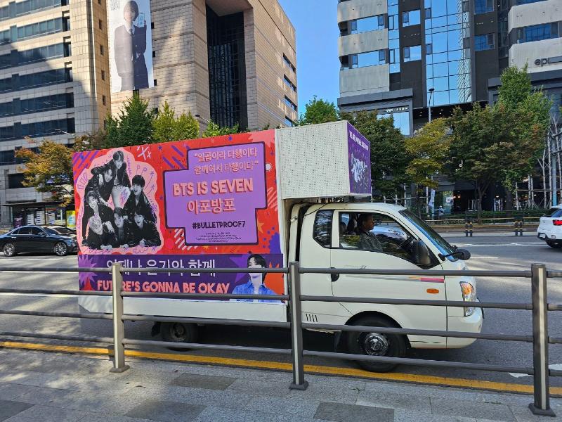 隨著熱議,海外阿米反應也十分迅速,火速送來了餐車應援,堅持「防彈少年團是7人」的立場👇