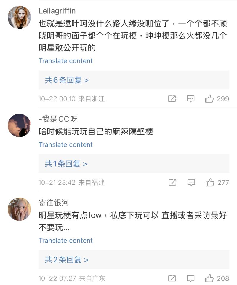 對於藝人公開玩葉珂梗,網友普遍認為很不大體,畢竟葉珂的另一半黃曉明,是許多人的大前輩👇