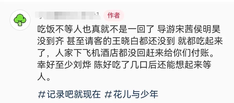 沒想到這爭議還沒結束,花少6又來一個吃飯不等人2.0!這次宋茜依然最無辜,花少團通過她的人脈,在國外吃上了山東菜,結果一行人還是沒等她就開吃!
