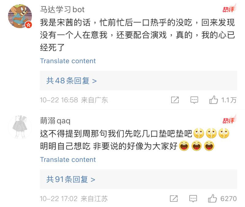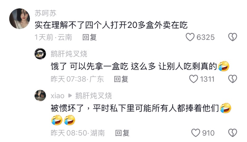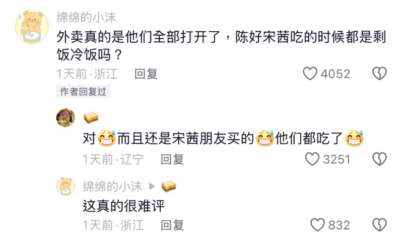 到底怎麼一回事呢?原來是當其他成員不在酒店時,這四個成員在周雨彤號召下,率先打開吃了9個人的飯菜👇