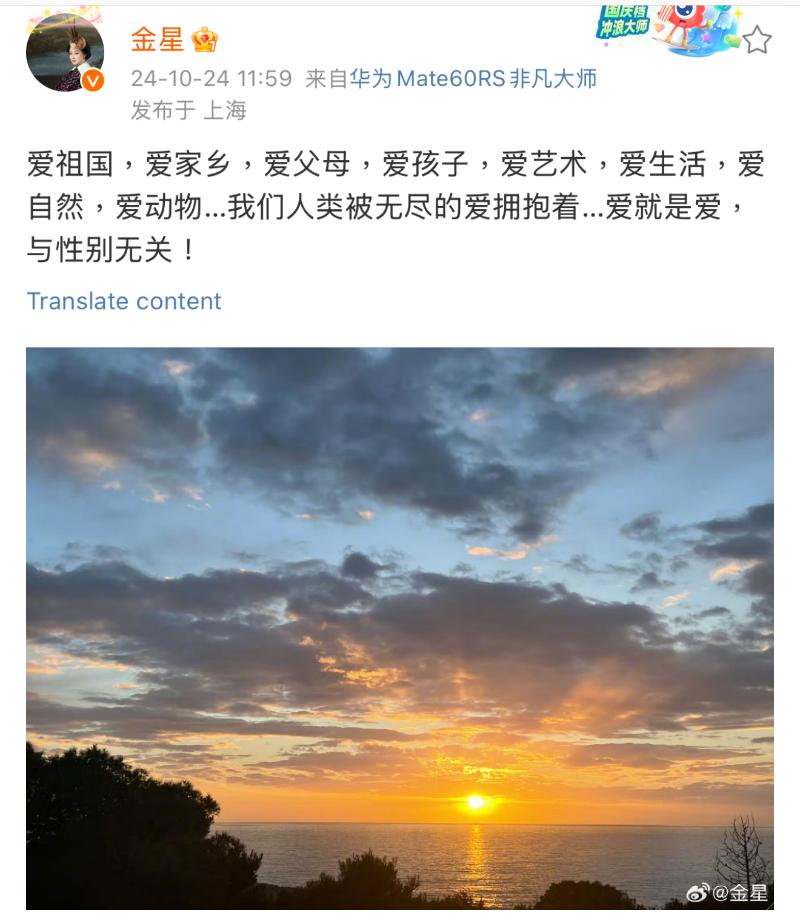 網友在其留言區留言之後,金星被發現已經刪除了原本控訴、以及說「清者自清」的微博,並兩度發了強調「愛無關性別」的貼文👇