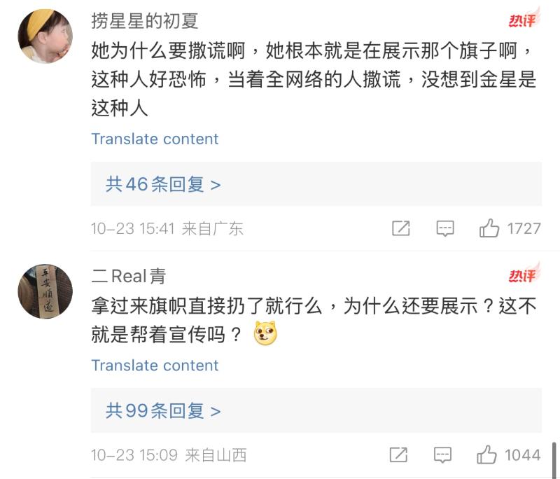 網友在其留言區留言之後,金星被發現已經刪除了原本控訴、以及說「清者自清」的微博,並兩度發了強調「愛無關性別」的貼文👇