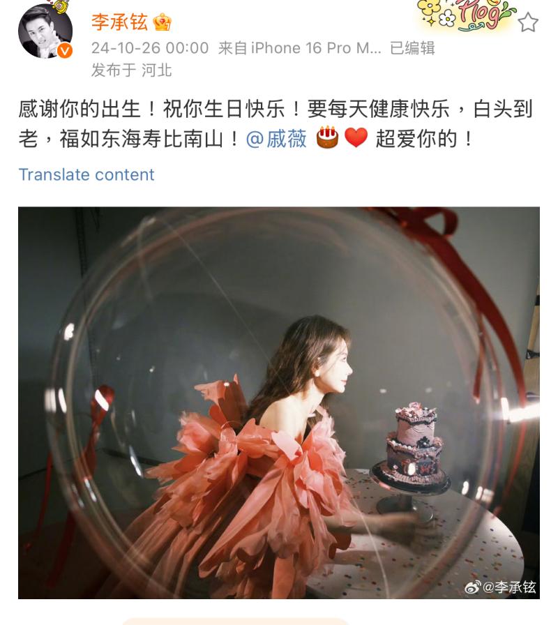 而在戚薇剛過去的40歲生日,李承鉉更是第一時間卡點送上生日祝福,可以用的成語都用上了,真夫妻秀恩愛就是最好嗑!