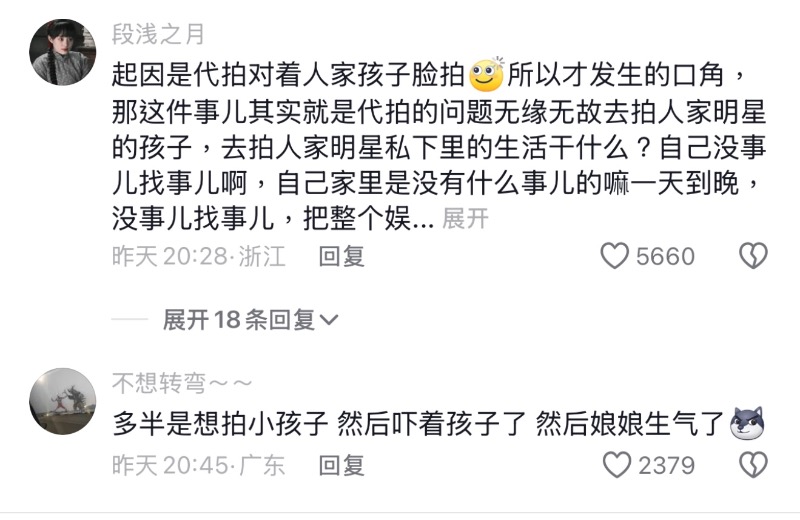 就有網友在評論區表示,兩人不是和路人吵架,這一看就是代拍懟著小孩拍,嚇到孩子了,所以做父母的才會這麼激動👇