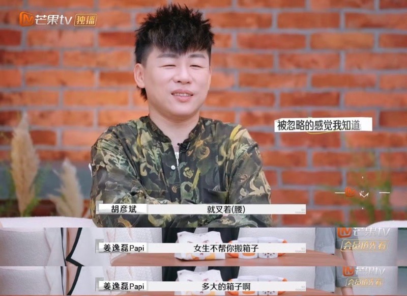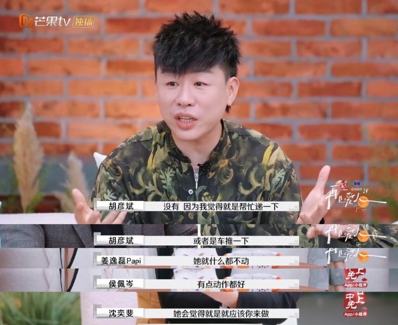 原來是胡彥斌在節目中,共情留幾手不幫葛夕搬行李箱,並吐槽也自己相同的經歷:「非常非常的噁心,就叉著腰,她就這麼站著看著你搬。」