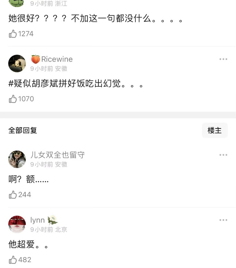 在引起熱議之後,胡彥斌發文維護,表示「不亂猜,不是她,她很好!」之後秒刪⋯