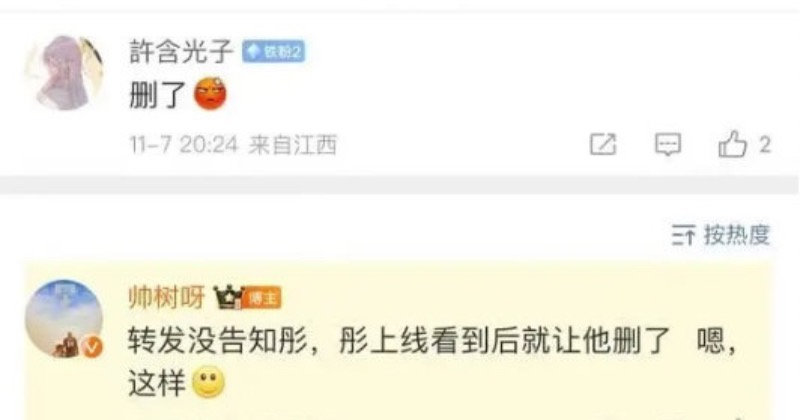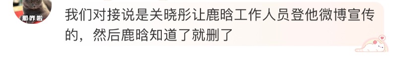 不過鹿晗對接方的回應則是:關曉彤讓鹿晗工作人員轉發,鹿晗不知情,知道之後刪除了👇